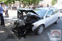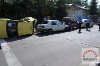 Autoturismul a fost lovit in plin de un Volskwagen care venea cu viteza de pe strada Ion Luca si care nu a acordat prioritate in intersectie.