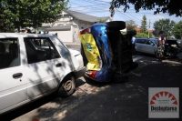 Masina a aterizat pe o rana pe trotuarul opus si a lovit o Dacia Solenza.