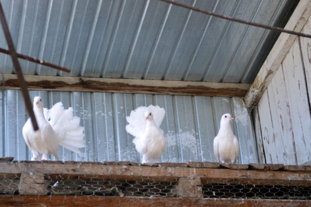 Din peisaj nu puteau sa lipseasca porumbeii, de la cei rotati (pe care ii mai inchiriaza cu succes pe la nunti), la voiajori, cretii unguresti, cretii francezi etc. Insa, de departe, cei mai spectaculosi sunt Tobosarii de Buhara, originari din fost Republica Sovietica Tadjikistan.