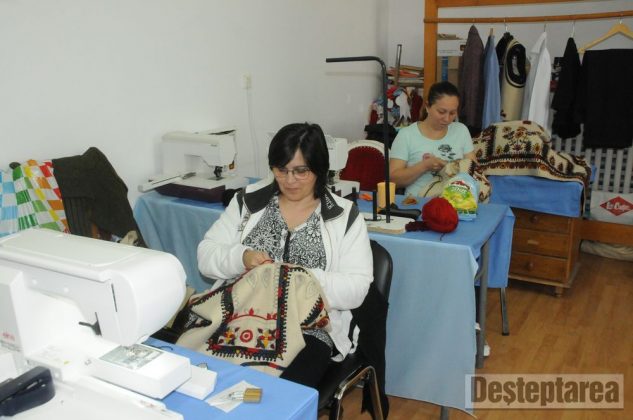 ”Apostrofată” pentru că ”nu ne-a anunțat nimeni că veniți, că ne aranjam și noi puțin”, am dat curs unui șir de întrebări care mă măcinau de ceva vreme. Fără să-și ridice ochii de la bundițe, continuând cu migală să lucreze, lucrătoarele iscusite mi-au împărtășit câte ceva din tainele costumului popular românesc, despre ce presupune munca la un astfel de costum și cât poate dura croiala acestuia, definiție aparte a ”răbdării” pentru ”finalitatea lucrului bine făcut”.