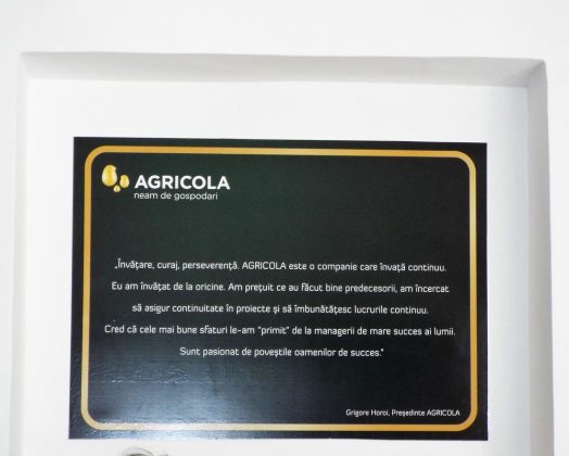 Panglica inaugurală a fost tăiată de Grigore Horoi și de Nicu Harasemciuc. „Știu că foarte multe companii și organizații nonprofit sunt implicate în a ajuta oameni cu probleme, cu nevoi, dar am salutat ideea de a sprijini și oamenii de valoare ai societății sau pe cei care urmează să devină valoroși – a spus, cu acest prilej, președintele Grupului Agricola.