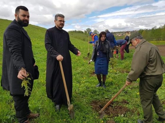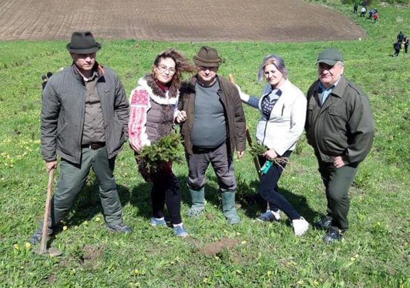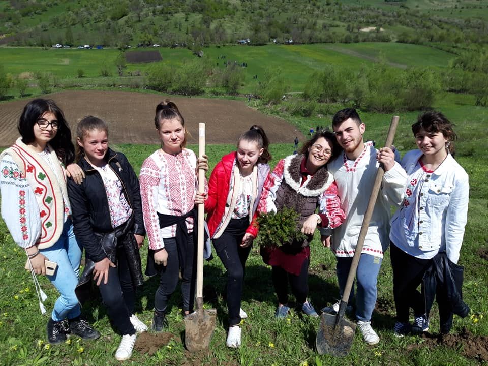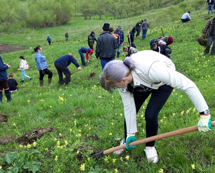 În total, o sută de persoane au renunțat la tradiționalul 1 Mai, cu bere și mici la grătar, și au pus umărul la plantarea molizilor pe dealul din Cernu.