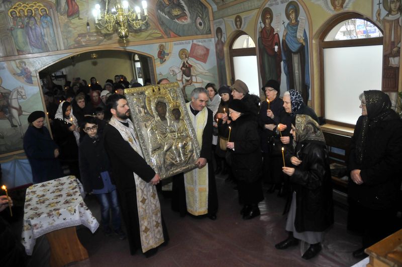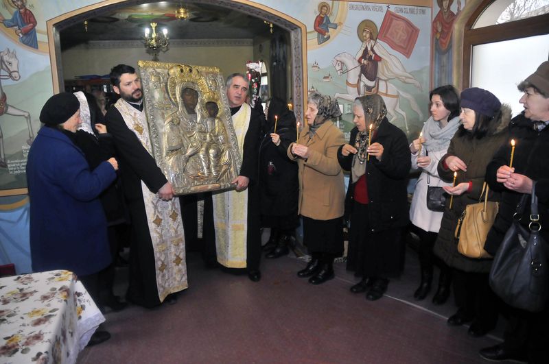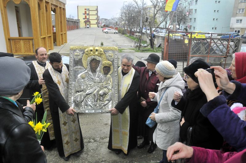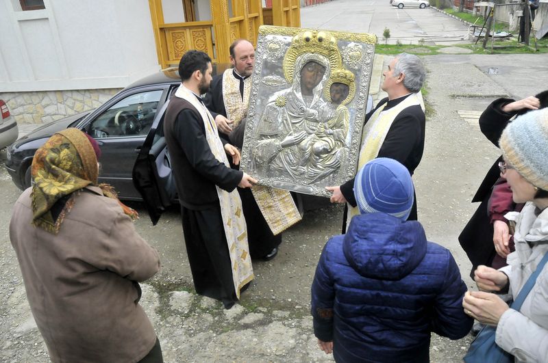 Cu binecuvântarea Înaltpreasfinţitului Ioachim, arhiepiscopul Romanului şi Bacăului, sfânta icoană a sosit în mijlocul credincioşilor duminică, 26 martie, la ora 16.00, fiind întâmpinată cu flori de către cei ce au ţinut să fie prezenţi la venirea ei. Ea va poposi spre închinarea credincioşilor până joi, 30 martie.
