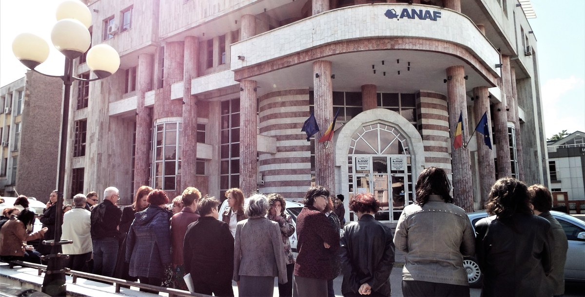 Ghișeele și birourile Administrației Județene Bacău a Finanțelor Publice au fost închise, luni, 15 mai, timp de o oră și jumătate (între orele 9,30 și 11,00). Salariații instituției au ieșit în fața sediului acesteia în semn de protest față de proiectul legii salarizării.