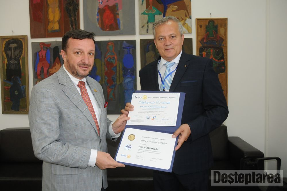 Și pentru că a fost și o reuniune a medicilor rotarieni, tot cu ocazia celei de a XII-a ediții a Zilelor Medicale ale Spitalului Municipal de Urgență Moinești, Clubul Rotary, Districtul 2241 România și Republica Moldova, prin Guvernatorul său Mircea Ștefan Solovăstru, prof. univ. dr. Adrian Cotîrleț a primit o plachetă și distincția Paul Harris, pentru contribuția adusă la dezvoltarea societății românești. Este a treia distincție oferită în Bacău (au mai primit Dan Stoica și Tobi Covrig), Paul Harris fiind cea mai mare distincție a Rotary International District, care se oferă unui rotarian.