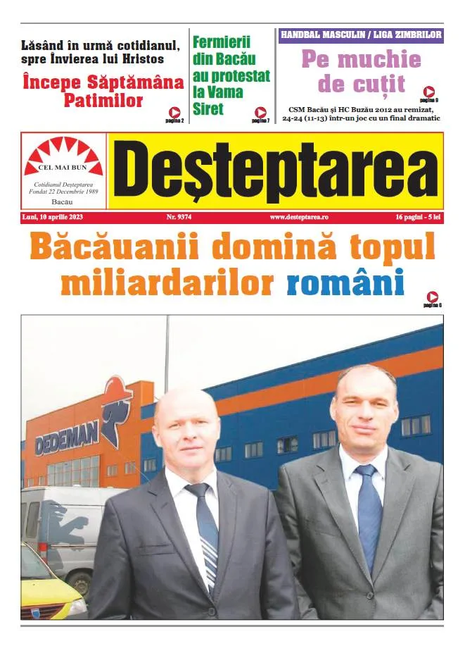 10 aprilie 2023 Deșteptarea10 aprilie 2023AcțiuneFacebookTwitterWhatsAppTelegramVK AcțiuneFacebookTwitterWhatsAppTelegramVK Spitalul „Prof. Dr. Eduard Apetrei” Buhuși deschide dialogul cu pacienții, într-o întâlnire programată pe 23 decembrieDouă dintre cele mai valoroase companii din România sunt din Bacău, conform Ziarului FinanciarBacău: Universitatea „Vasile Alecsandri” a organizat serbarea de CrăciunDublă lansare de carte la Centrul de Cultură „George Apostu”, cu Carmen Mihalache și Dan PerșaCreștere a infecțiilor respiratorii în județul Bacău. Opt cazuri noi de gripă în ultima săptămânăPesta porcină africană confirmată la IteștiPompierii au verificat adăposturile antiaeriene. Doar 6% din populația județului încape în eleBurnout-ul de sărbători. De ce nu ne simțim mai bine după vacanță, ci mai obosiți„Genealogii imaginare”. Expoziție de sculptură Marian PetreIntervenție chirurgicală minim invazivă de excepție, realizată la Secția de Chirurgie și Ortopedie Pediatrică a SJU BacăuFotbal/ Liga 3: Etapă de final de anIncendiu într-un apartament din Moinești: 27 de persoane evacuate în siguranță