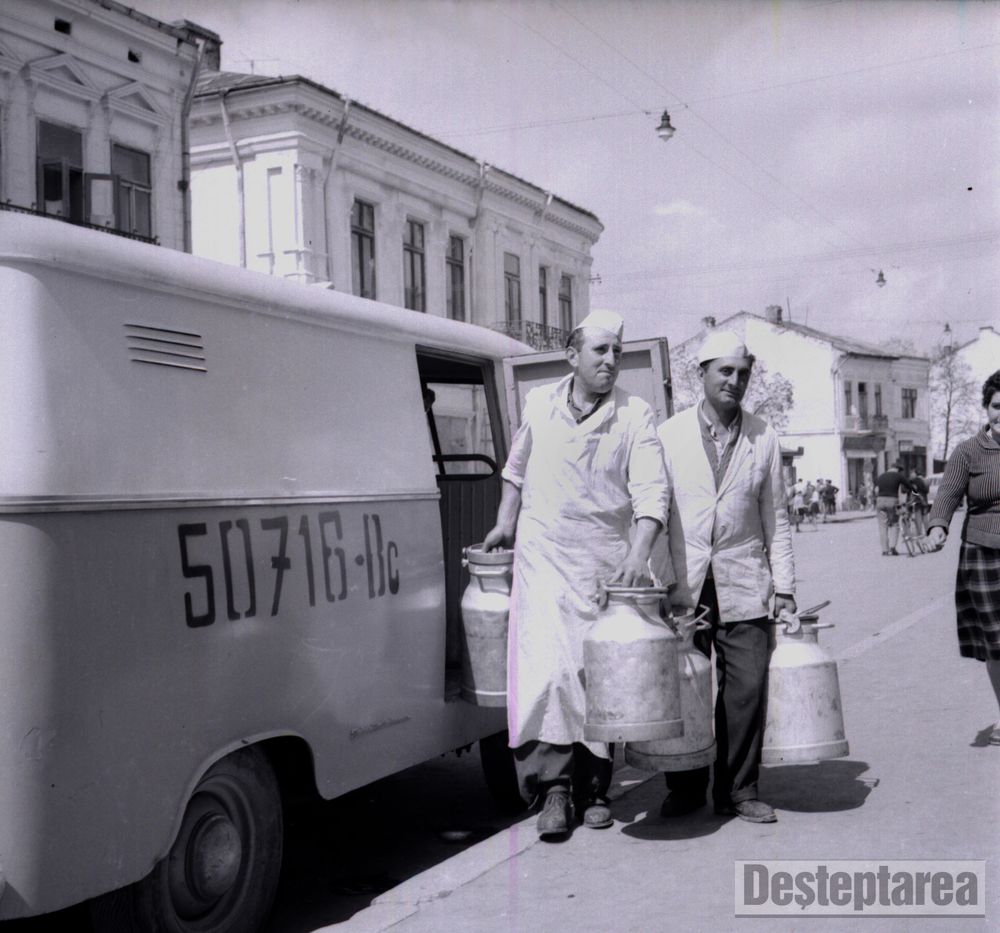 Nu știu în ce aducea neamțul laptele, dar gospodinele noastre lăsau de seara în pragul ușii recipientele la schimb. Unul, maxim două, cu monedele înăuntru, plus bacșișul care se ridica la 50 de bani. Munca omului care stătea la coadă dimineața, alături de alți mici întreprinzători, la poarta fabricii. Genul acesta de comerciant avea să mai fie acceptat de regimul comunist doar câțiva ani.