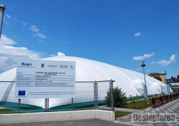 Comăneștenii se vor trata de căldura toridă a acestui week-end la noua piscină construită de primărie în Complexul de Agrement Trotuș, de pe malul râului care străbate orașul. Balonul presostatic care protejează piscina pe vreme rea a fost scos în cursul zilei de joi, 28 iunie, iar noua piscină a rămas sub soare și sub cerul liber.