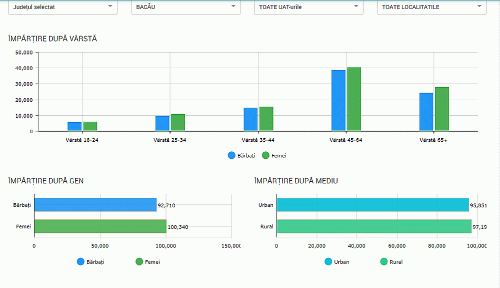 Cel mai mare număr de alegători s-a înregistrat la secția de la școala nr 1 Slănic Moldova – 714, din care 316 pe liste suplimentare.