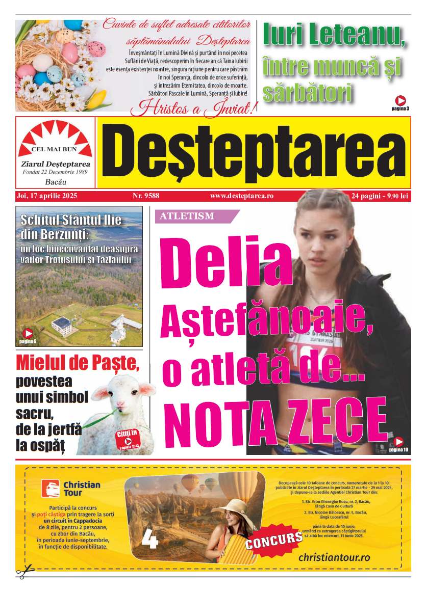 17 aprilie 2025 Deșteptarea17 aprilie 2025AcțiuneFacebookTwitterWhatsAppTelegramVK AcțiuneFacebookTwitterWhatsAppTelegramVK Rezultatele finale ale Concursului Interdisciplinar „Vrănceanu – Procopiu” Bacău, ediția a XXIV-a, 2025Fotbal: Ne-a părăsit Ioan Sdrobiș!Insula Misterioasă la balul Bobocilor de la Liceul Teoretic „Henri Coandă” BacăuZiua Internațională a Voluntariatului celebrată prin concurs de mediu la Palatul Copiilor BacăuU17 FC Viitorul Onești, calificare dramatică în optimile Cupei RomânieiObținerea permisului de conducere, mai simplă: cazierul judiciar este verificat direct la ghișeuAvertisment dur de la Garda de Mediu Bacău: un operator economic din Ardeoani, sancționat drastic pentru poluareJandarmii băcăuani i-au adus căldură lui Nea Vasile, 74 de aniFotbal/ Liga 3: Viitorul Onești câștigă, FC Bacău 2 încheie la egalitate un meci dramatic, iar Aerostar pierde acasăClubul Sportiv Bronx, rezultate remarcabile la competiția din Houlegate, FranțaConferința „Excelență, inovație și performanță în medicină” – un eveniment de referință pentru comunitatea medicală băcăuanăSub semnul recunoștinței și al binelui comun la hramul bisericii „Sfântul Nicolae” din Bacău