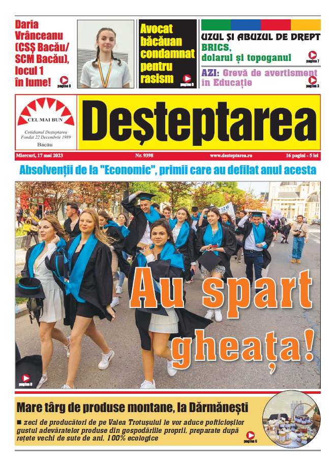 17 mai 2023 Deșteptarea17 mai 2023AcțiuneFacebookTwitterWhatsAppTelegramVK AcțiuneFacebookTwitterWhatsAppTelegramVK Două dintre cele mai valoroase companii din România sunt din Bacău, conform Ziarului FinanciarBacău: Universitatea „Vasile Alecsandri” a organizat serbarea de CrăciunDublă lansare de carte la Centrul de Cultură „George Apostu”, cu Carmen Mihalache și Dan PerșaCreștere a infecțiilor respiratorii în județul Bacău. Opt cazuri noi de gripă în ultima săptămânăPesta porcină africană confirmată la IteștiPompierii au verificat adăposturile antiaeriene. Doar 6% din populația județului încape în eleBurnout-ul de sărbători. De ce nu ne simțim mai bine după vacanță, ci mai obosiți„Genealogii imaginare”. Expoziție de sculptură Marian PetreIntervenție chirurgicală minim invazivă de excepție, realizată la Secția de Chirurgie și Ortopedie Pediatrică a SJU BacăuFotbal/ Liga 3: Etapă de final de anIncendiu într-un apartament din Moinești: 27 de persoane evacuate în siguranță Dedeman continuă consolidarea rețelei naționale prin deschiderea unui nou magazin în Mediaș