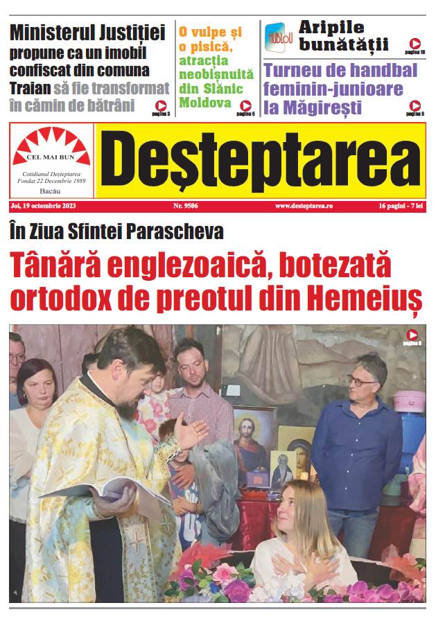 19 octombrie 2023 Deșteptarea19 octombrie 2023AcțiuneFacebookTwitterWhatsAppTelegramVK AcțiuneFacebookTwitterWhatsAppTelegramVK Peste 30 de intervenții gestionate de pompierii băcăuani în acest weekendRezultatele finale ale Concursului Interdisciplinar „Vrănceanu – Procopiu” Bacău, ediția a XXIV-a, 2025Fotbal: Ne-a părăsit Ioan Sdrobiș!Insula Misterioasă la balul Bobocilor de la Liceul Teoretic „Henri Coandă” BacăuZiua Internațională a Voluntariatului celebrată prin concurs de mediu la Palatul Copiilor BacăuU17 FC Viitorul Onești, calificare dramatică în optimile Cupei RomânieiObținerea permisului de conducere, mai simplă: cazierul judiciar este verificat direct la ghișeuAvertisment dur de la Garda de Mediu Bacău: un operator economic din Ardeoani, sancționat drastic pentru poluareJandarmii băcăuani i-au adus căldură lui Nea Vasile, 74 de aniFotbal/ Liga 3: Viitorul Onești câștigă, FC Bacău 2 încheie la egalitate un meci dramatic, iar Aerostar pierde acasăClubul Sportiv Bronx, rezultate remarcabile la competiția din Houlegate, FranțaConferința „Excelență, inovație și performanță în medicină” – un eveniment de referință pentru comunitatea medicală băcăuană