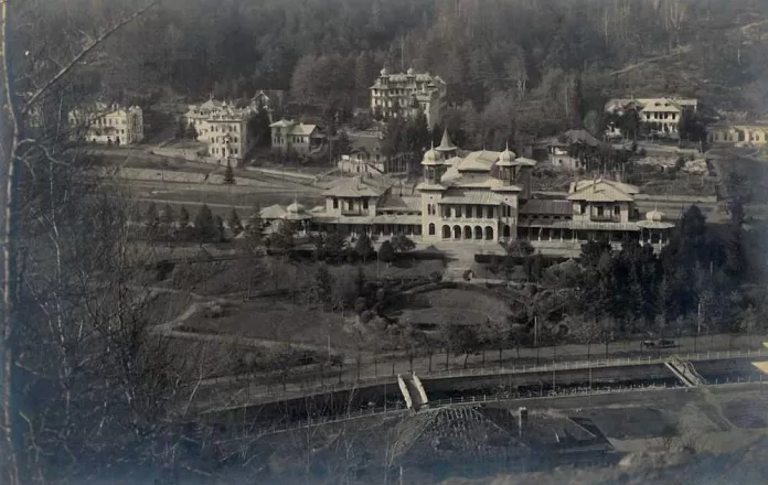 Din cele consemnate la fața locului aflăm că focul a izbucnit la stabilimentul de inhalații și aer comprimat, care era situat în parcul stațiunii (se vede în imaginea atașată). Flăcările au cuprins și marea clădire a fostului ,,Hotel Mic” unde erau amplasate farmacia lui Johann Werner, atelierul foto a lui Packer, ca și alte locuințe ocupate de familiile Chaland, Werner, Packer și alții: ,,Cerul era acoperit de o pânză de flăcări, iar împrejurimile, iluminate de o mare de lumină. Panica ajunse la culme. Întreaga clădire e încinsă de coloane de foc, iar prin geamurile ce plesneau se zărește interiorul asemănător unui cuptor roșit de flăcări, de scântei și de fum. Enorma dogoreală și norii de scântei amenințau să aprindă barăcile și casele din împrejurimi, precum și pădurile apropiate. Totul este în primejdie și orice putere omenească pare dezarmată în fața groaznicului element distrugător. Limbile de foc se întind cu repeziciunea fulgerului, alimentate fiind de mulțimea produselor inflamabile aflate în vasta farmacie. În câteva minute, marea clădire, împreună cu farmacia și atelierul foto sunt prefăcute într-un morman de ruine. Oamenii Administrației băilor, împreună cu epitropii C. B. Pennescu și Dimitrie Botez s-au aflat în epicentrul incendiului, de unde au dirijat operațiunile de stingere a flăcărilor și de salvare a bunurilor.