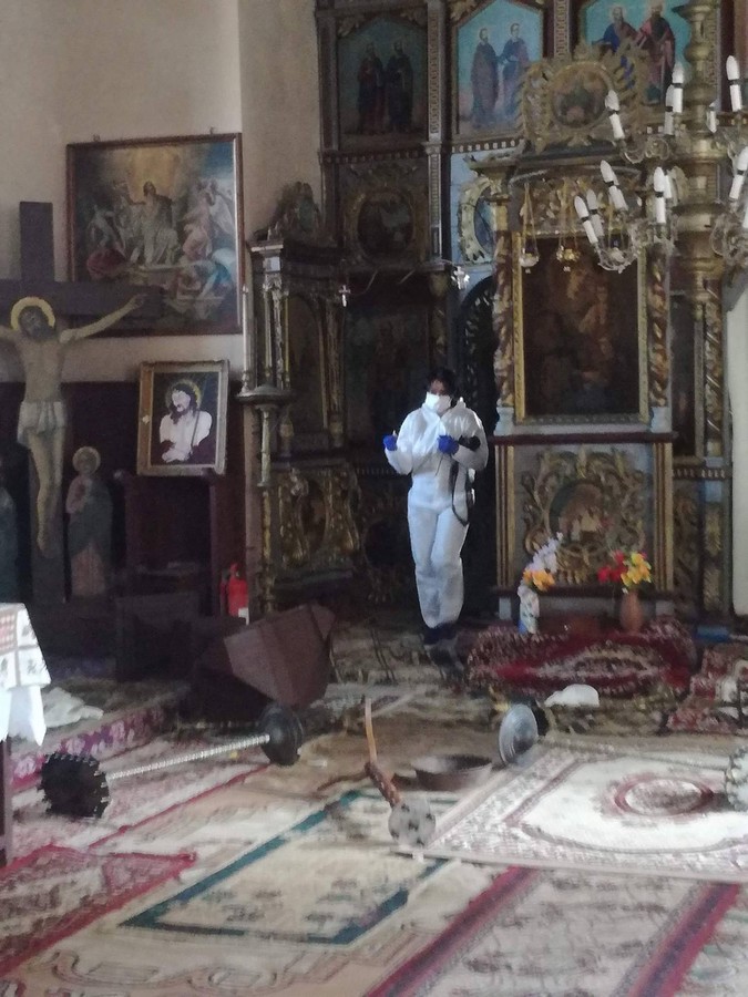 Un muncitor ar fi descoperit fapta dimineaţă, când a venit la biserică, şi a alertat imediat autorităţile.