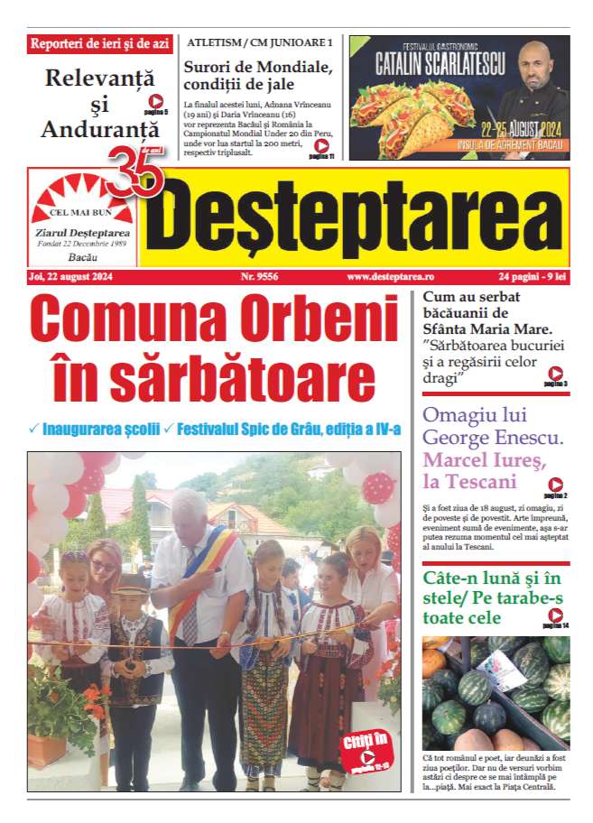 22 august 2024 Deșteptarea22 august 2024AcțiuneFacebookTwitterWhatsAppTelegramVK Prima pagină AcțiuneFacebookTwitterWhatsAppTelegramVK Peste 30 de intervenții gestionate de pompierii băcăuani în acest weekendRezultatele finale ale Concursului Interdisciplinar „Vrănceanu – Procopiu” Bacău, ediția a XXIV-a, 2025Fotbal: Ne-a părăsit Ioan Sdrobiș!Insula Misterioasă la balul Bobocilor de la Liceul Teoretic „Henri Coandă” BacăuZiua Internațională a Voluntariatului celebrată prin concurs de mediu la Palatul Copiilor BacăuU17 FC Viitorul Onești, calificare dramatică în optimile Cupei RomânieiObținerea permisului de conducere, mai simplă: cazierul judiciar este verificat direct la ghișeuAvertisment dur de la Garda de Mediu Bacău: un operator economic din Ardeoani, sancționat drastic pentru poluareJandarmii băcăuani i-au adus căldură lui Nea Vasile, 74 de aniFotbal/ Liga 3: Viitorul Onești câștigă, FC Bacău 2 încheie la egalitate un meci dramatic, iar Aerostar pierde acasăClubul Sportiv Bronx, rezultate remarcabile la competiția din Houlegate, FranțaConferința „Excelență, inovație și performanță în medicină” – un eveniment de referință pentru comunitatea medicală băcăuană