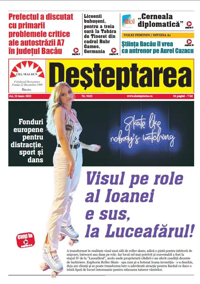 22 iunie 2023 Deșteptarea22 iunie 2023AcțiuneFacebookTwitterWhatsAppTelegramVK AcțiuneFacebookTwitterWhatsAppTelegramVK Sărbători la Centrul de Zi „Clubul Pensionarilor”Fotbal/ Liga 2: FC Bacău pregătește ultimul meci al anului: derby-ul cu CeahlăulS-a deschis Atletic Park. Cum aratăIncendiu la o locuință din Slănic MoldovaCum alegi pensulele de machiaj și produsele care completează rutina perfectăVolei: Turneu internațional de old-boys la Sala Sporturilor „Narcisa Lecușanu”Rolul unui stil de viață activ și al vitaminelorȘi școala poate fi numită acasăOnești: Spitalul Municipal introduce aparatură de nivel universitar pentru proceduri gastroenterologice avansateZilele libere legale în 2026: ce program vor avea salariații româniSe deschide Athletic Park Bacău – un nou reper sportiv pentru comunitateActivitățile ISU Bacău în noiembrie: pregătirea și reziliența comunităților