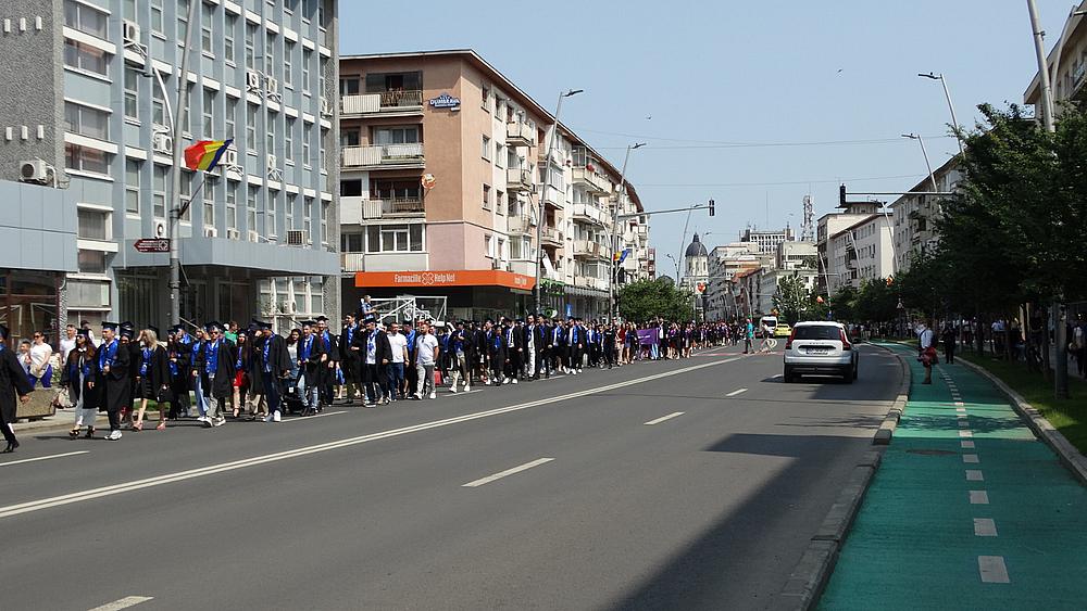 Defilarea absolvenților a început cu ora 10.00, iar de la ora 12.00, au urmat festivitățile, organizate pe cele 5 facultăți: Facultatea de Inginerie, Facultatea de Litere, Facultatea de Științe, Facultatea de Științe Economice și Facultatea de Științe ale Mișcării, Sportului și Sănătății.