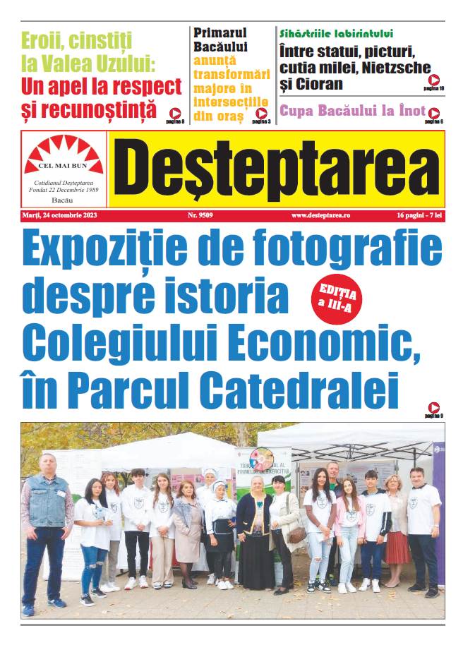 24 octombrie 2023 Deșteptarea24 octombrie 2023AcțiuneFacebookTwitterWhatsAppTelegramVK AcțiuneFacebookTwitterWhatsAppTelegramVK Peste 30 de intervenții gestionate de pompierii băcăuani în acest weekendRezultatele finale ale Concursului Interdisciplinar „Vrănceanu – Procopiu” Bacău, ediția a XXIV-a, 2025Fotbal: Ne-a părăsit Ioan Sdrobiș!Insula Misterioasă la balul Bobocilor de la Liceul Teoretic „Henri Coandă” BacăuZiua Internațională a Voluntariatului celebrată prin concurs de mediu la Palatul Copiilor BacăuU17 FC Viitorul Onești, calificare dramatică în optimile Cupei RomânieiObținerea permisului de conducere, mai simplă: cazierul judiciar este verificat direct la ghișeuAvertisment dur de la Garda de Mediu Bacău: un operator economic din Ardeoani, sancționat drastic pentru poluareJandarmii băcăuani i-au adus căldură lui Nea Vasile, 74 de aniFotbal/ Liga 3: Viitorul Onești câștigă, FC Bacău 2 încheie la egalitate un meci dramatic, iar Aerostar pierde acasăClubul Sportiv Bronx, rezultate remarcabile la competiția din Houlegate, FranțaConferința „Excelență, inovație și performanță în medicină” – un eveniment de referință pentru comunitatea medicală băcăuană