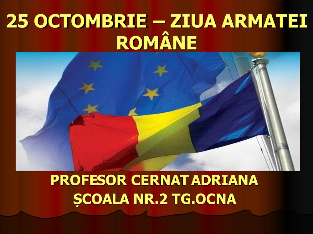 În fiecare an, la 25 octombrie, românii sărbătoresc armata naţională, cinstind faptele de arme ale soldaţilor, gradaţilor, subofiţerilor, martirilor militari, ofiţerilor şi generalilor, activi, în rezervă sau în retragere care, de-a lungul timpului, au servit patria cu onoare şi credinţă, sub flamura drapelului tricolor.