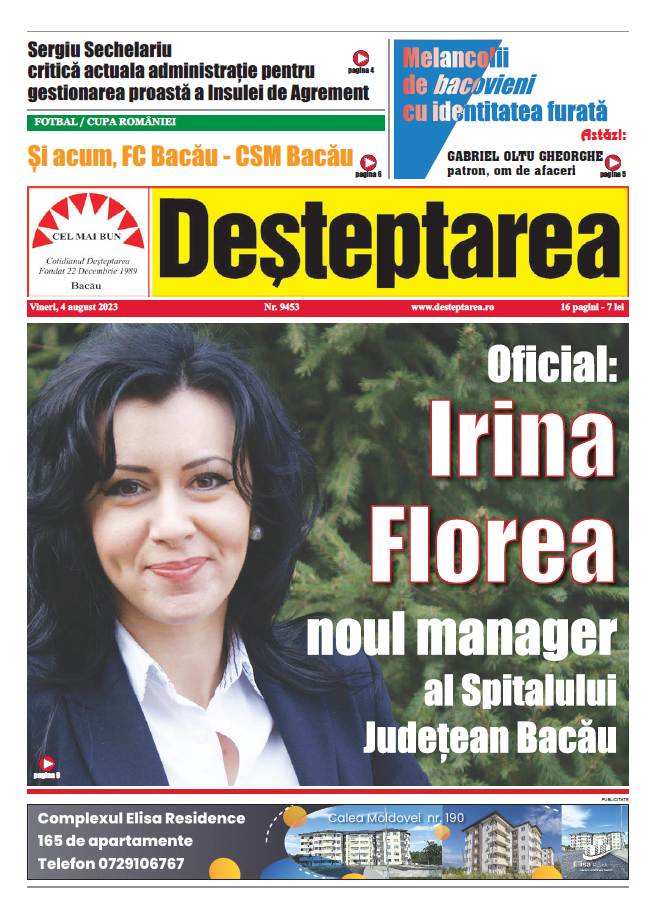 4 august 2023 Deșteptarea4 august 2023AcțiuneFacebookTwitterWhatsAppTelegramVK AcțiuneFacebookTwitterWhatsAppTelegramVK Peste 30 de intervenții gestionate de pompierii băcăuani în acest weekendRezultatele finale ale Concursului Interdisciplinar „Vrănceanu – Procopiu” Bacău, ediția a XXIV-a, 2025Fotbal: Ne-a părăsit Ioan Sdrobiș!Insula Misterioasă la balul Bobocilor de la Liceul Teoretic „Henri Coandă” BacăuZiua Internațională a Voluntariatului celebrată prin concurs de mediu la Palatul Copiilor BacăuU17 FC Viitorul Onești, calificare dramatică în optimile Cupei RomânieiObținerea permisului de conducere, mai simplă: cazierul judiciar este verificat direct la ghișeuAvertisment dur de la Garda de Mediu Bacău: un operator economic din Ardeoani, sancționat drastic pentru poluareJandarmii băcăuani i-au adus căldură lui Nea Vasile, 74 de aniFotbal/ Liga 3: Viitorul Onești câștigă, FC Bacău 2 încheie la egalitate un meci dramatic, iar Aerostar pierde acasăClubul Sportiv Bronx, rezultate remarcabile la competiția din Houlegate, FranțaConferința „Excelență, inovație și performanță în medicină” – un eveniment de referință pentru comunitatea medicală băcăuană