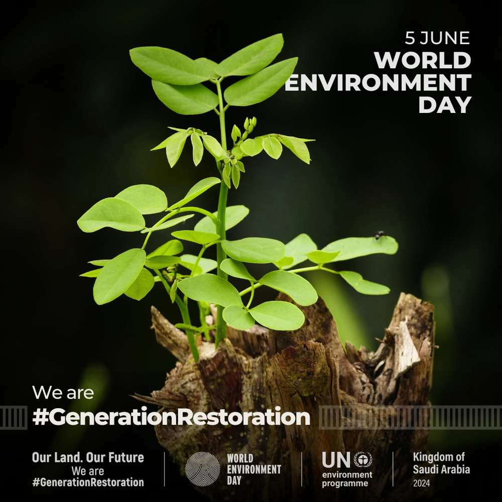 • Tema propusă de Programul Națiunilor Unite pentru Mediu (UNEP) pentru sărbătorirea Zilei Mondiale a Mediului în anul 2024 este: #GenerațiaRestaurării” („#GenerationRestauration”), cu sloganul “Pământul nostru. Viitorul nostru. Noi suntem #GenerațiaRestaurării”. Campania din acest an se concentrează pe adoparea de politici/strategii și inițierea de activități care să pună accentul pe restaurarea/regenerarea terenurilor degradate, pe deșertificare și pe rezistența la secetă.