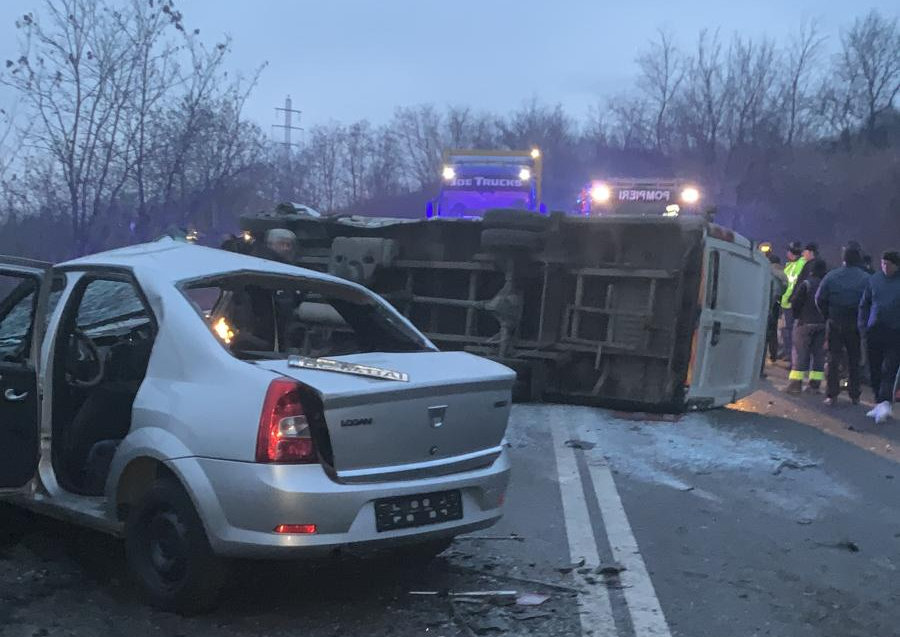Potrivit acestuia, au fost răniţi şi şoferul şi pasagerul din autoturism şi trei persoane din microbuz.