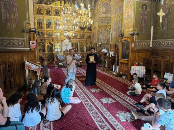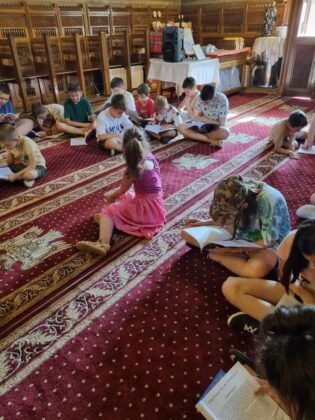 SUB ICOANA ŞTEFANIANĂ. Şcoala de vară de la Biserica „Precista” din Bacău este rodul colaborării cu Asociaţia Profesorilor de Religie „Sfânta Paraschiva” din judeţul Bacău. Teodora Plăeşu, preşedinta organizaţiei, a ţinut să includă în program un exerciţiu de lectură publică, iar preotul paroh Mihail Tomozei, împreună cu pr. Adrian-Constantin Bârdan, a prezentat icoana lui Ştefan cel Mare şi Sfânt, precum şi un detaliu semnificativ din istoricul aşezământului ecleziastic: la Biserica „Precista” a fost botezat, la 22 iunie 1818, poetul Vasile Alecsandri. „Noi suntem copiii acestui popor / Statornic, viteaz, curajos, rugător. / Dorim să petrecem vacanţa frumos, / Uniţi în credinţă, iubind pe Hristos” este refrenul imnului copiilor participanţi la şcolile de vară din această eparhie, compus de Înaltpreasfinţitul Părinte Ioachim, arhiepiscopul Romanului şi Bacăului.