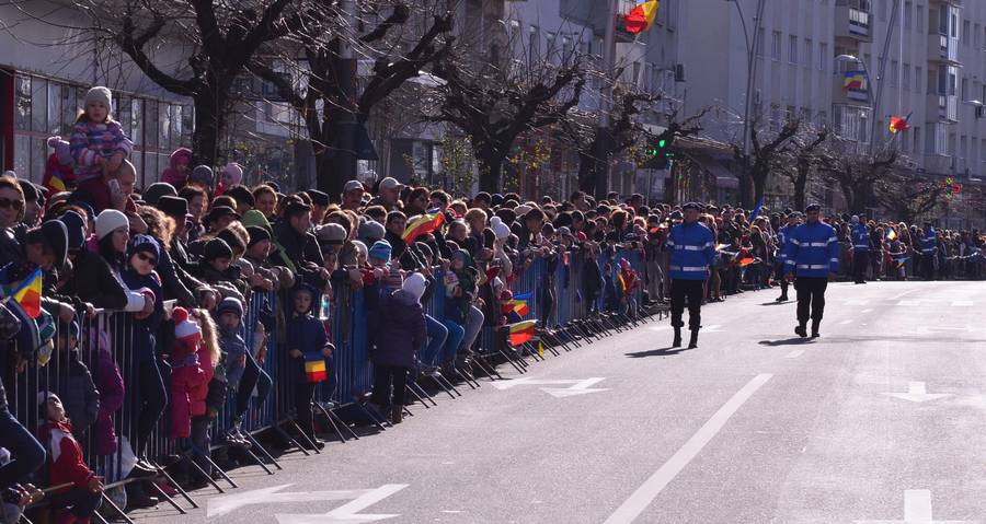 Vremea frumoasa i-a scos din casa pe bacauanii care au dorit sa asiste la spectacolul pregatit de Ziua Nationala. Aproximativ 9.000 de persoane s-au aliniat de-a lungul trotuarelor, de la Casa Judeteana de Asigurari de Sanatate si pâna la statuia lui Stefan cel Mare.
