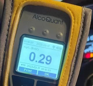Bărbatul a fost testat cu aparatul etilotest, rezultând o alcoolemie de 0,29 mg/l alcool pur în aerul expirat.