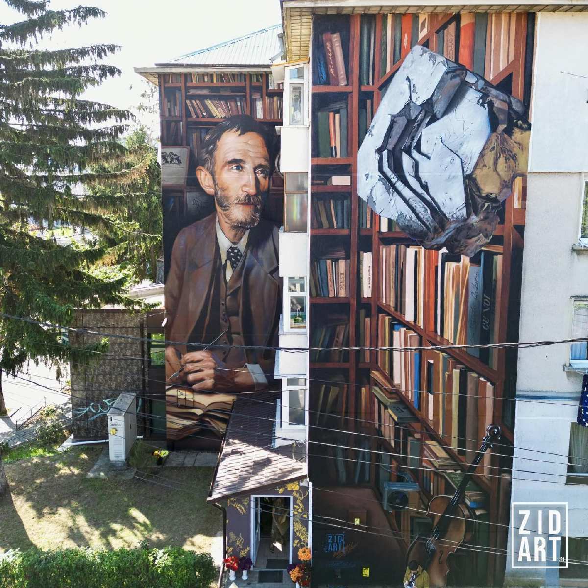 Principalul punct de atracție al festivalului a fost o imensă pictură murală, realizată de artistul Bogdan Scutaru, stabilit în Danemarca. Această operă de artă impresionantă îl înfățișează pe poetul George Bacovia la masa de studiu, într-un cadru în care cărțile și simbolurile pasiunilor sale pentru desen și muzică se îmbină armonios. Cu o privire melancolică îndreptată spre orizont și un zâmbet abia perceptibil, Bacovia devine, astfel, o prezență vibrantă în peisajul cultural al orașului Bacău.
