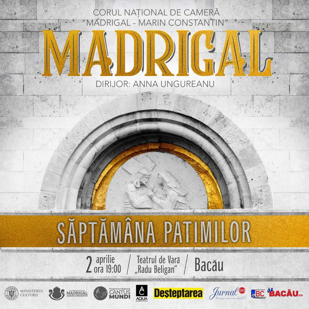 Miercuri, 2 aprilie, de la ora 19:00, Corul Național de Cameră „Madrigal – Marin Constantin”, dirijat de Anna Ungureanu, invită publicul din Bacău la Spectacolul Extraordinar „Săptămâna Patimilor” .