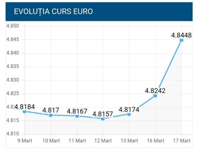 EconomieA explodat cursul leu-euro Deșteptarea17 martie 2020AcțiuneFacebookTwitterWhatsAppTelegramVK Cursul oficial a ajuns, astăzi, la 4,8448 lei pentru un euro, cea mai mare valoare înregistrata vreodata pentru moneda europeana.Tot astăzi a crescut și indicele ROBOR: AcțiuneFacebookTwitterWhatsAppTelegramVK Spitalul „Prof. Dr. Eduard Apetrei” Buhuși deschide dialogul cu pacienții, într-o întâlnire programată pe 23 decembrieDouă dintre cele mai valoroase companii din România sunt din Bacău, conform Ziarului FinanciarBacău: Universitatea „Vasile Alecsandri” a organizat serbarea de CrăciunDublă lansare de carte la Centrul de Cultură „George Apostu”, cu Carmen Mihalache și Dan PerșaCreștere a infecțiilor respiratorii în județul Bacău. Opt cazuri noi de gripă în ultima săptămânăPesta porcină africană confirmată la IteștiPompierii au verificat adăposturile antiaeriene. Doar 6% din populația județului încape în eleBurnout-ul de sărbători. De ce nu ne simțim mai bine după vacanță, ci mai obosiți„Genealogii imaginare”. Expoziție de sculptură Marian PetreIntervenție chirurgicală minim invazivă de excepție, realizată la Secția de Chirurgie și Ortopedie Pediatrică a SJU BacăuFotbal/ Liga 3: Etapă de final de anIncendiu într-un apartament din Moinești: 27 de persoane evacuate în siguranță