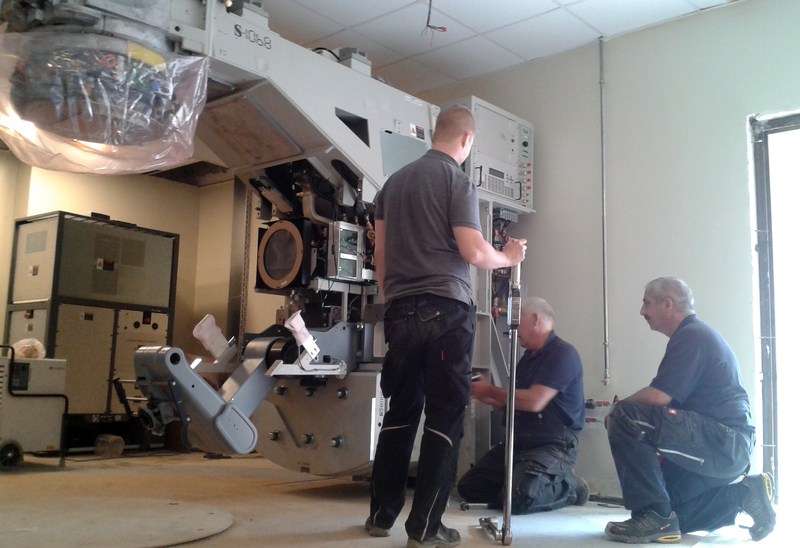 Pe baza informatiilor furnizate de acest computer, acceleratorul isi va directiona raza de actiune exact pe formatiunea tumorala si astfel se va evita iradierea inutila a tesuturilor sanatoase din jurul acesteia. In prezent, o echipa de specialisti din Germania, trimisa de firma producatoare, lucreaza la montarea acceleratorului de particule, care a ajuns in urma cu doua saptamâni la spital.