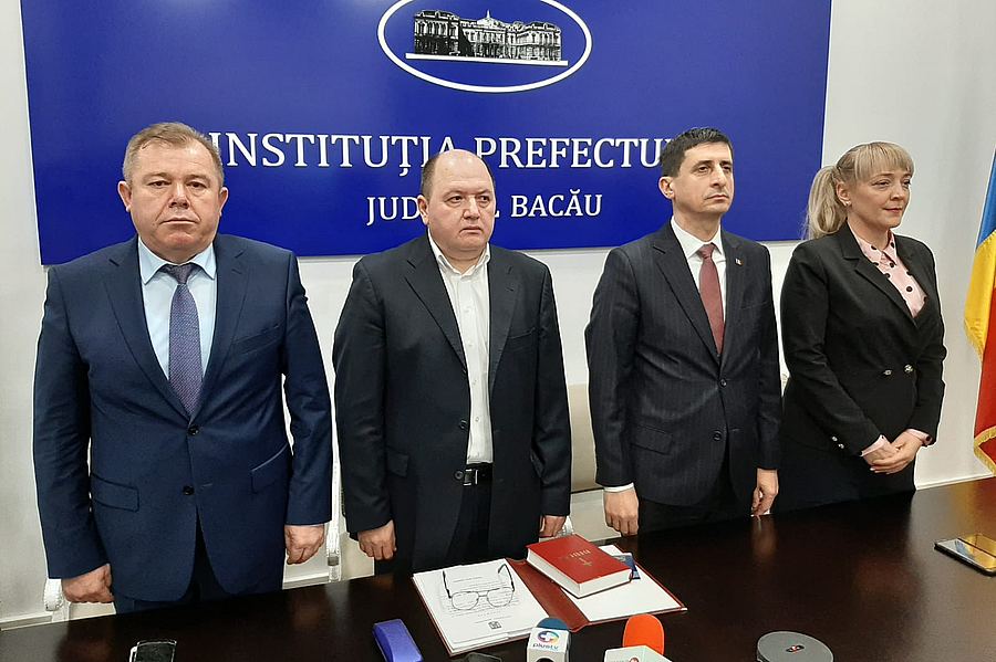 Joi, la ora 11.00, în sala mică a Palatului Administrativ, a avut loc ceremonia de învestire a celui de-al doilea subprefect al județului Bacău, în persoana lui Emil Dragoș Dragu. Solemnitatea, oficiată prin videoconferință de ministrul Afacerilor Interne, Marcel Ion Vela, a avut loc în direct, la eveniment fiind prezenți atât prefectul Liviu Miroșeanu, subprefectul Maricica Luminița Coșa și Ioan Melinte, președintele organizației PMP Bacău (formațiunea politică ce l-a propus pe Emil Dragoș Dragu), cât și șefii instituțiilor deconcentrate.