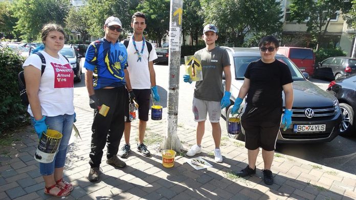Dacă ieri ați văzut niște tineri prin oraș care vopseau niște însemne pe stâlpii de iluminat (și nu numai) din oraș, să știți că ei erau voluntarii Asociației „Prietenii Camino de Santiago”. Ei au marcat traseul Camino de Santiago – România pe raza municipiului Bacău.