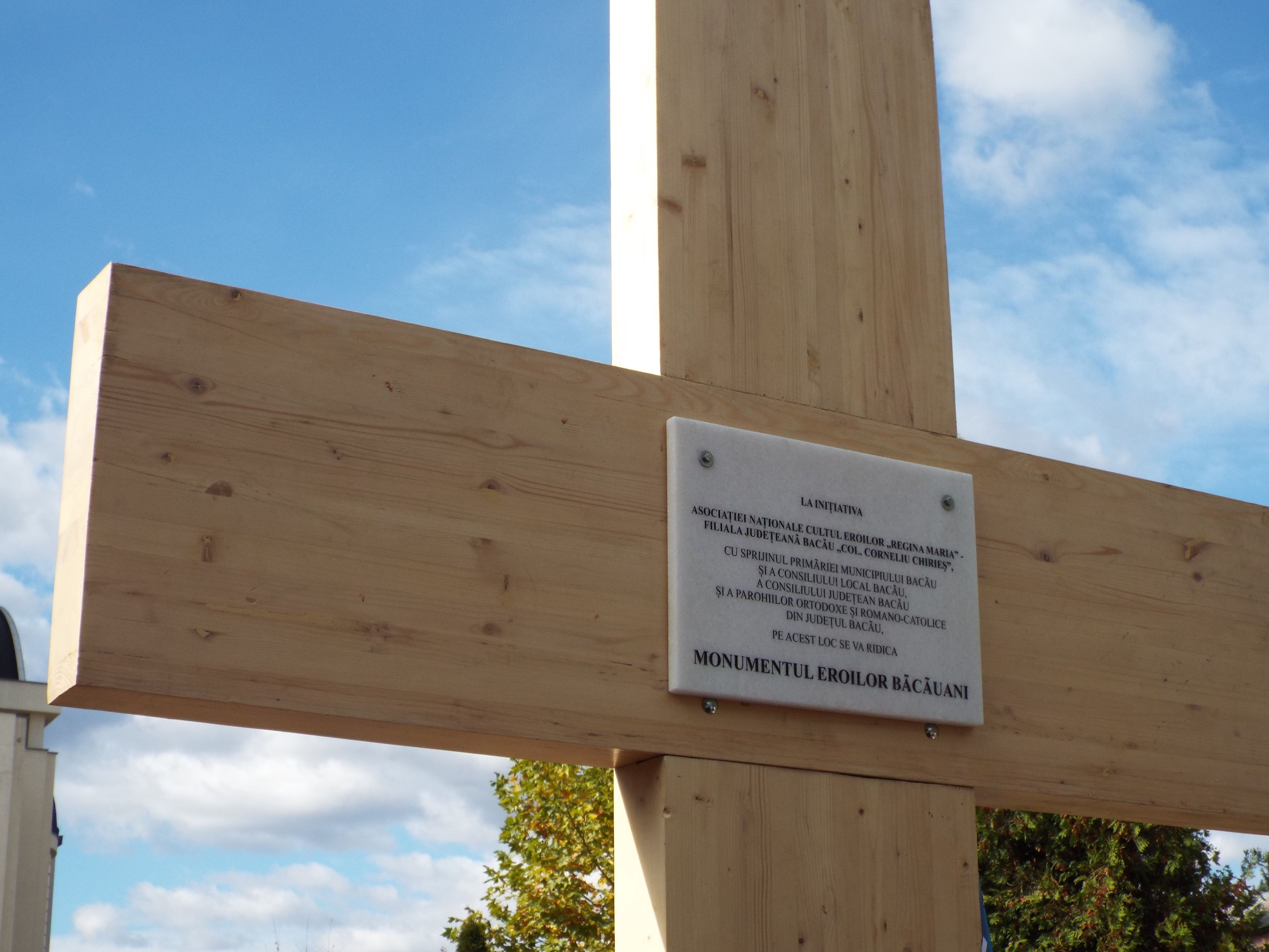 Crucea așezată în Parcul Catedralei din Bacău pe locul viitorului Monument al Eroilor a fost sfințită, joi, 25 octombrie, printr-un ceremonial militar și religios, chiar de Ziua Armatei României. La ceremonial au fost prezenți Maricica Luminița Coșa – prefectul județului, Sorin Brașoveanu – președintele Consiliului Județean, primarul Cosmin Necula și alți oficiali civili și militari.