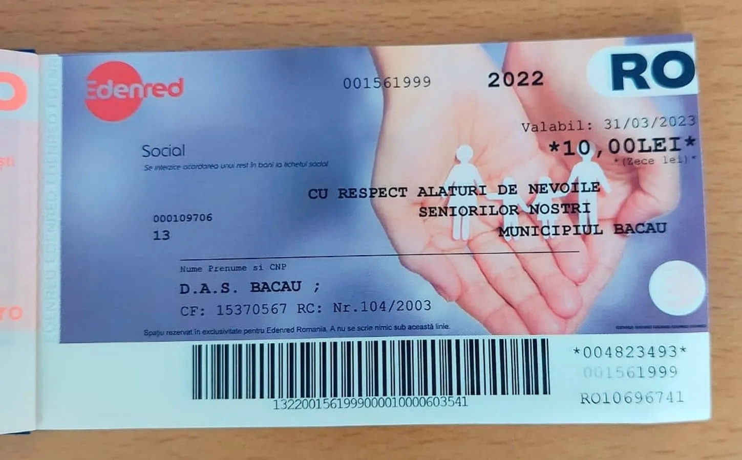 Începând cu data de 15 aprilie 2024, pensionarii domiciliați în Municipiul Bacău primesc tichetele valorice.