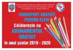 Ca în fiecare an, Primăria Bacău împreună cu SC Transport Public SA Bacău asigură transport gratuit pentru elevi. Pentru a beneficia de această facilitate, elevii își pot ridica abonamentul gratuit de la unitățile de învățământ.