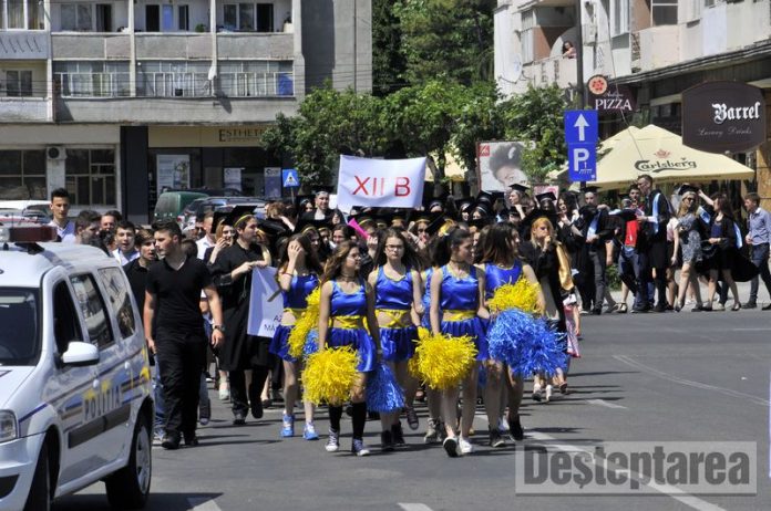 Insotiti de cadrele didactice si dotati cu fluiere si vuvuzele, absolventii si-au strigat bucuria finalizarii unui ciclu important din viata lor.