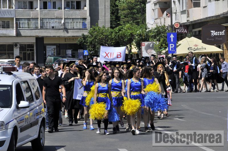 Vineri la ora 11.00, cei 216 de absolventi de la Colegiul National Pedagogic „Stefan Cel Mare” Bacau au iesit pe poarta unitatii de invatamânt intr-o defilare ce s-a desfasurat pe traseul Tic-Tac-Piata Tricolorului-Universitatea „George Bacovia”.