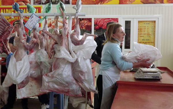 Hala de carne si brânzeturi din Piata Centrala a fost remodelata, magazinele unde rar calca vreun musteriu si care ocupau loc degeaba au fost desfiintate, iar acum locul le-a fost de câtiva comercianti de carne de miel. Sâmbata se putea spune ca era abundenta de carne, fiindca nu prea era cerere. Mieii erau destul de mari, cam intre sapte si zece kilograme o jumatate de carcasa, dar se vindeau si pe bucati, o pulpa sau doar coaste, spre deosebire de anii trecuti, când comerciantii se codeau sa taie carcasele. Pretul a fost sâmbata de 25 de lei/kg, dar la un stand din aceeasi zona se gasea carne si cu 23 de lei kilogramul de miel si 20 de lei berbecutul. Lumea cumpara mai ales jumatati de miel (cam 200 de lei), fiindca au si pulpe si coaste, din care se poate scoate si de un bors si de-o friptura, dar destui s-au multumit doar si cu o pulpa din spate, daca au avut noroc sa gaseasca. Un miel intreg, cu organe cu tot, pentru drob, ajungea si la 500 lei.