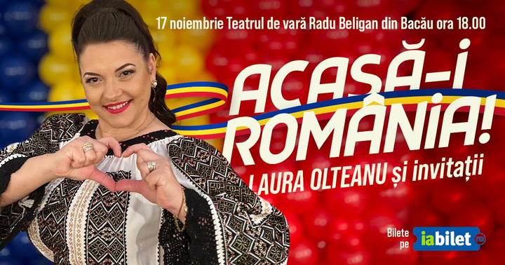 Pe data de 17 noiembrie, la ora 18:00, Teatrul de Vară Radu Beligan din Bacău va fi gazda unei noi ediții a spectacolului folcloric ACASĂ-I ROMÂNIA, un eveniment deosebit dedicat sufletului românesc, tradițiilor și valorilor autentice care definesc identitatea noastră națională. Acest spectacol promite să fie un moment de neuitat pentru iubitorii de folclor, oferindu-le o seară încărcată de emoție și patriotism.