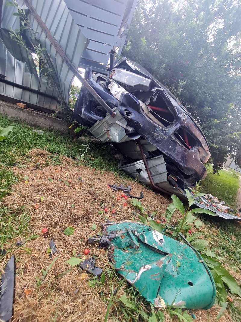 Din fericire, în urma accidentului nu s-au înregistrat victime, fiind raportate doar pagube materiale. Gardul casei a fost serios avariat, iar stația de autobuz a suferit de asemenea daune semnificative. Imagini de la fața locului arată mașina răsturnată peste gard, cu partea frontală complet distrusă, resturi metalice împrăștiate și semne vizibile ale impactului.