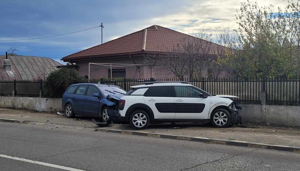 Martorii oculari au declarat că impactul a fost destul de puternic, iar mașina albă a fost răsucită în urma coliziunii.