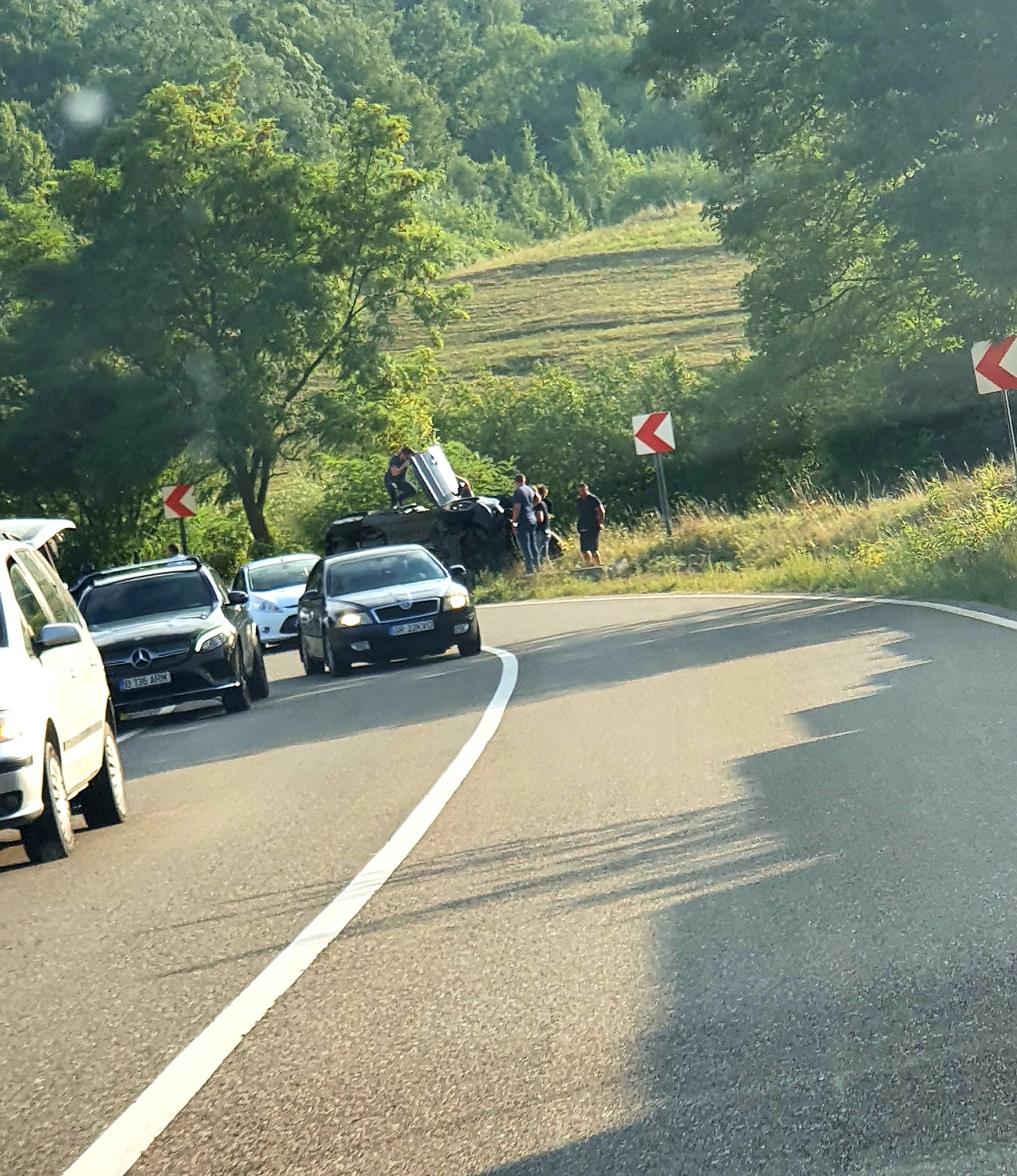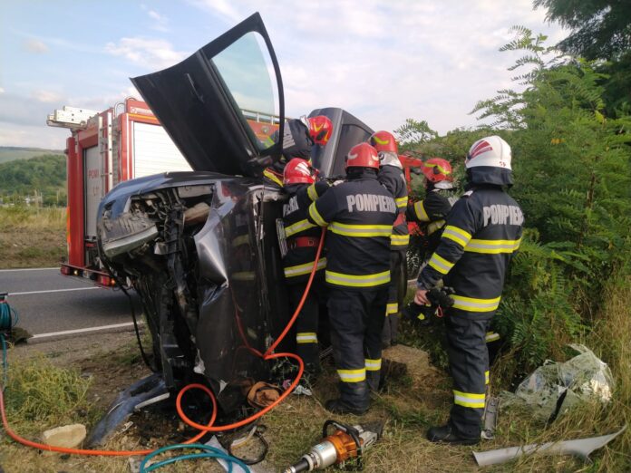 În urma accidentului au rezultat două victime, una dintre ele fiind descarcerată de pompierii militari.
