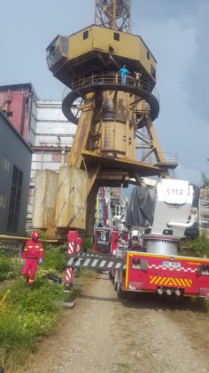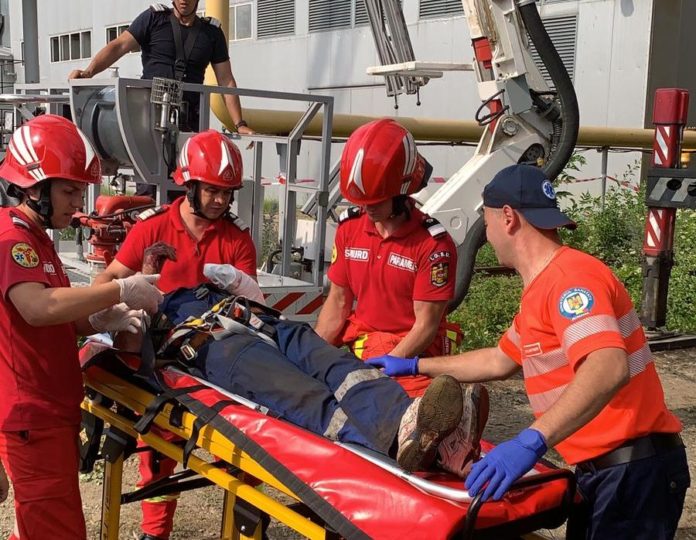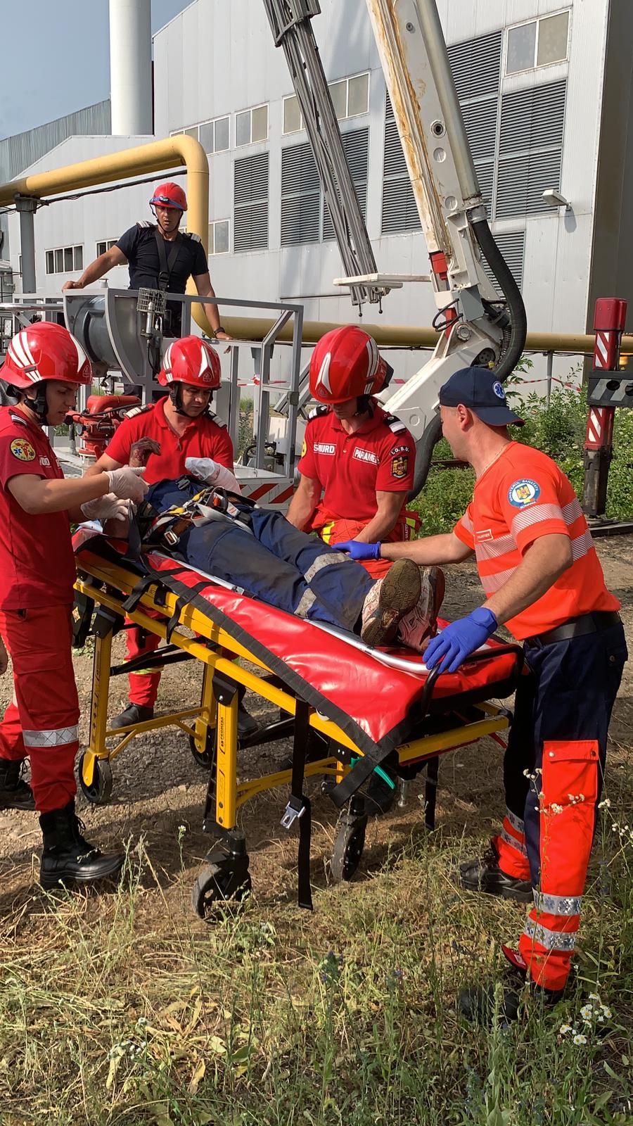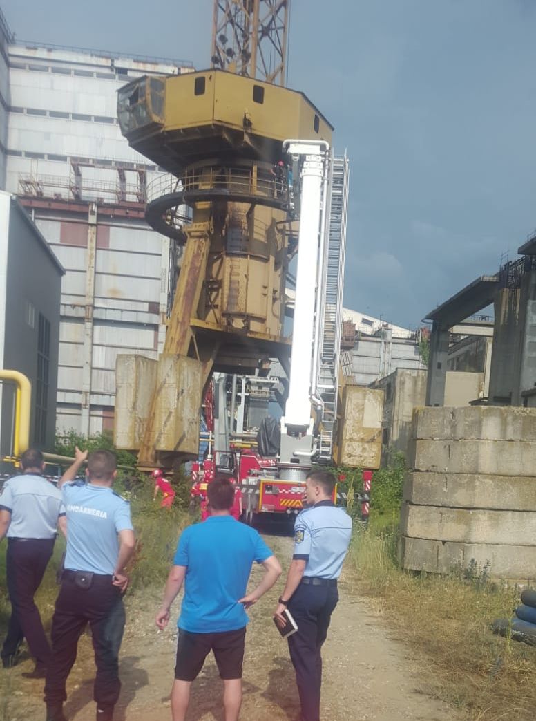 Palma stângă a șoferului unei macarale a fost amputată. Bărbatul lucra la o înălțime de 30 de metru iar pompierii au intervenit pentru a-l coborî.