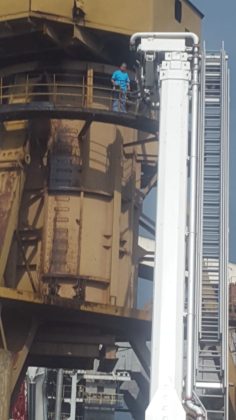 Pompierii băcăuani au intervenit pentru a degaja un macaragiu care a suferit un accident de muncă.