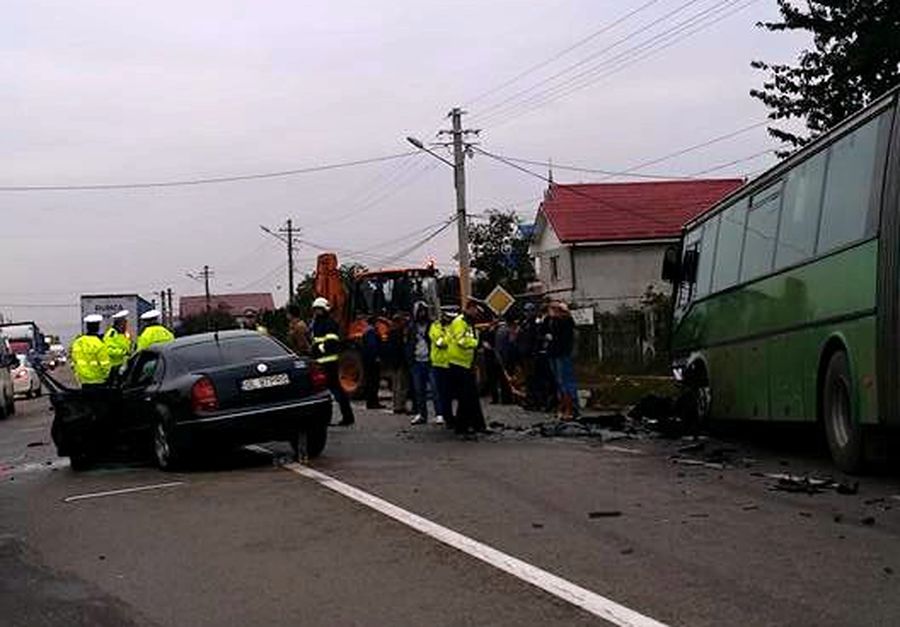 Conform politistilor, o Skoda condusa de un barbat de 57 de ani din Galati care mergea spre Bacau a intrat pe contrasens si s-a izbit de un autobuz care circula spre Gioseni.