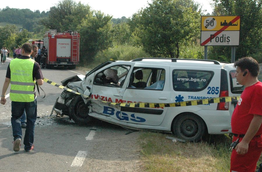 O masina plina cu bolnavi dializati a fost lovita in plin de o Dacia Solenza, in satul Podis, comuna Margineni. Bilantul este tragic: noua victime, dintre care una decedata la fata locului, si alte opt, ce au fost internate in urgenta. Printre raniti se aflau si sase bolnavi care veneau de la dializa, din Bacau. Evenimentul rutier s-a produs ieri dupa amiaza, in jurul orei 17.00. Politia a deschis o ancheta in acest caz.