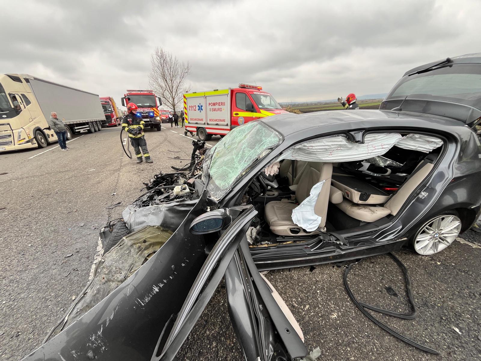 Din impact au rezultat două victime, respectiv, cei doi conducători auto, unul din ei fiind grav rănit.